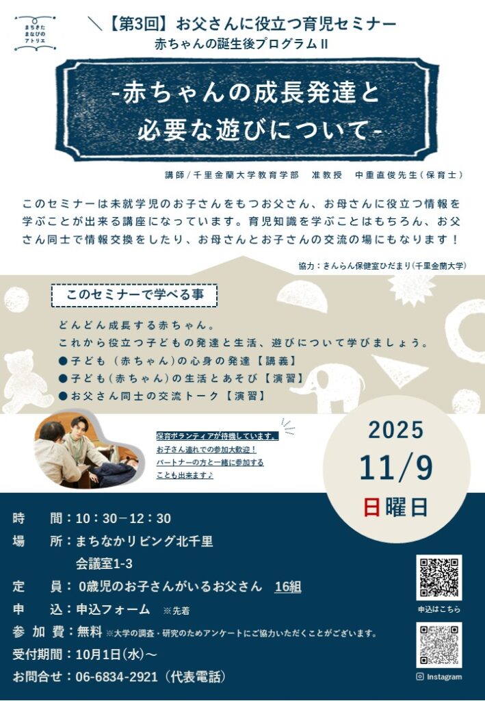 11/9(日) 【第3回】お父さんに役立つ育児セミナー