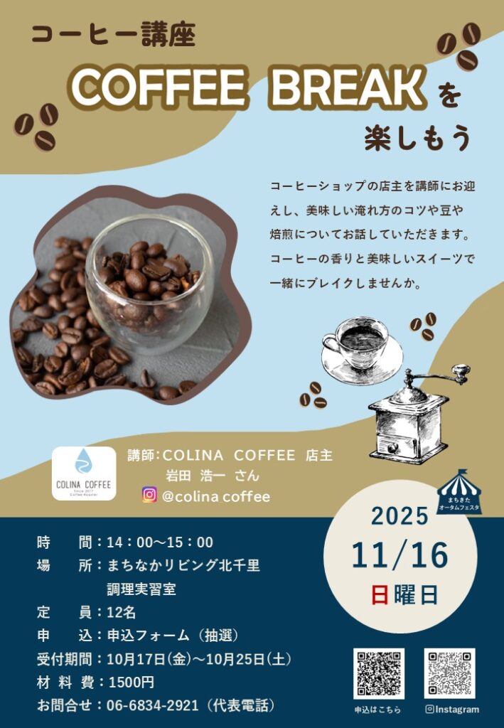 11/16(日) コーヒー講座 COFFEE BREAKを楽しもう※受付を終了いたしました