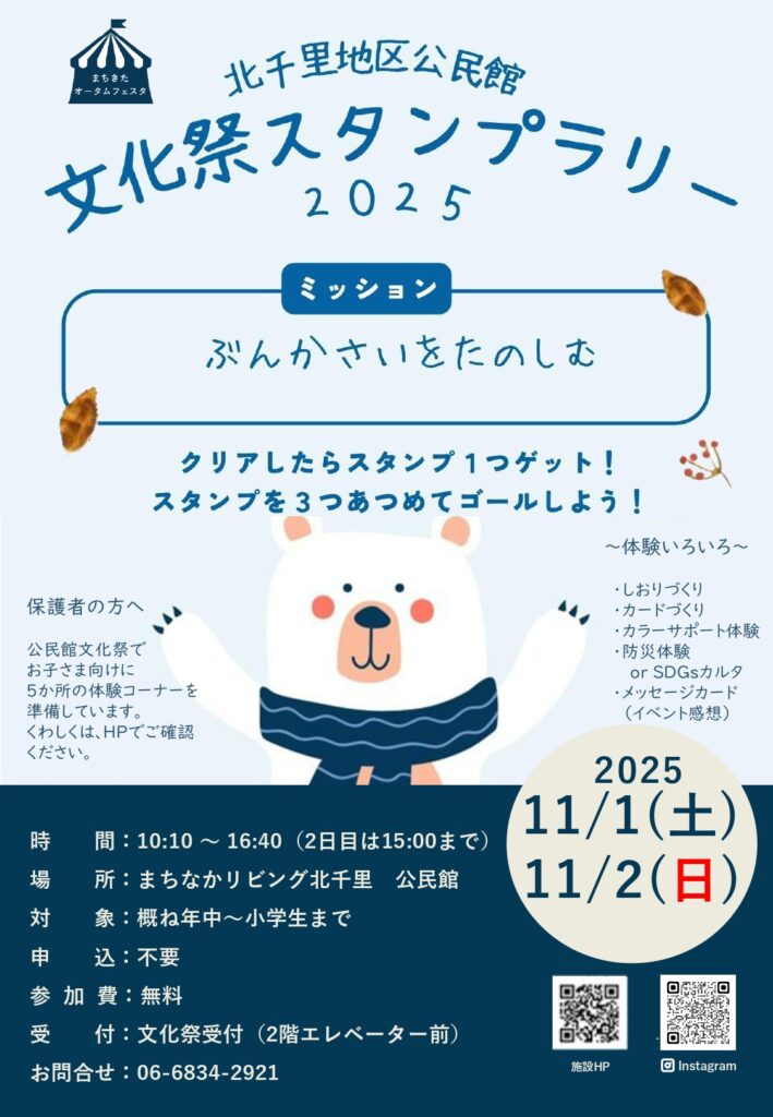 11/1(土)・2(日) 北千里地区公民館 文化祭スタンプラリー2025
