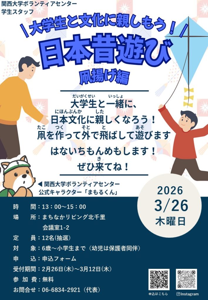 3/26(木) 大学生と文化に親しもう!日本昔遊び 凧揚げ篇