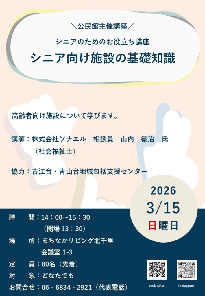 3/15(日) シニアのためのお役立ち講座 シニア向け施設の基礎知識