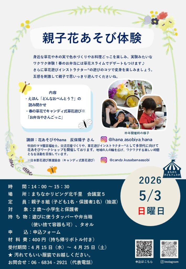 | 定員 | 親子8組(子ども1名・保護者1名)(抽選) |
