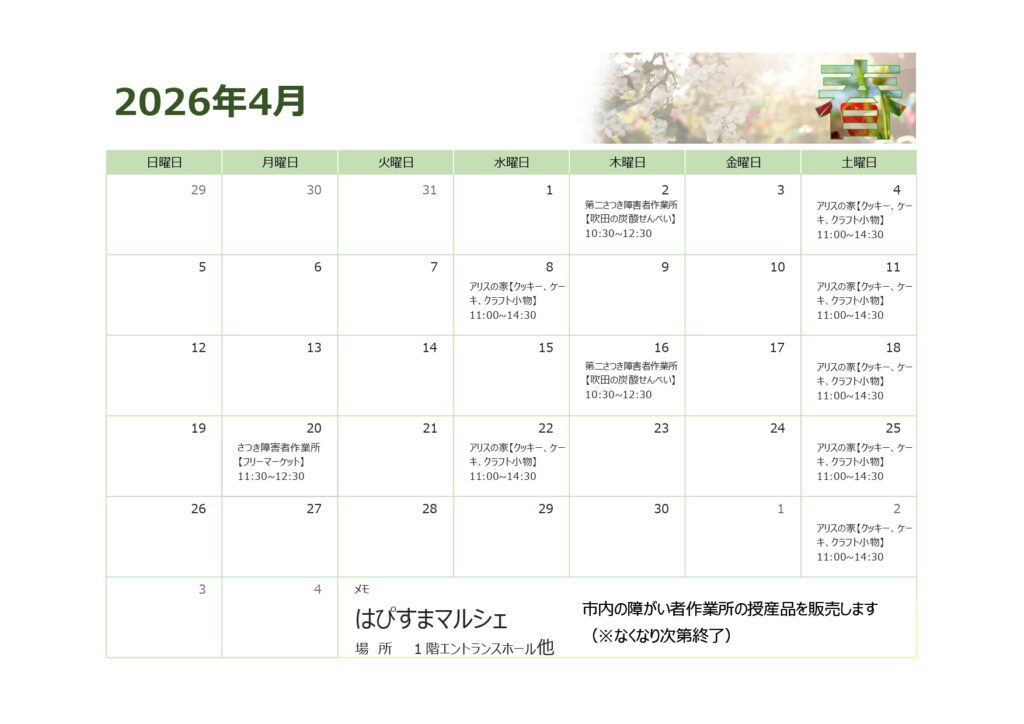 令和8年 4月 はぴすまマルシェ 出店スケジュール