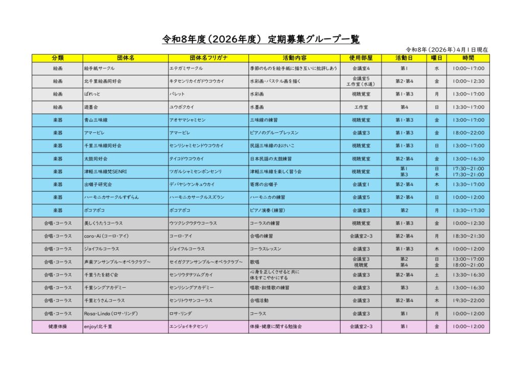 令和8(2026)年度 公民館グループ活動募集一覧